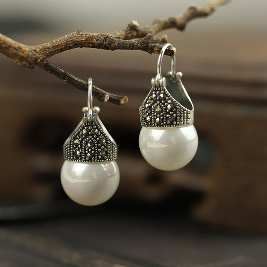 Vintage Style S925 Sterling Silver Pearl Drop Earrings