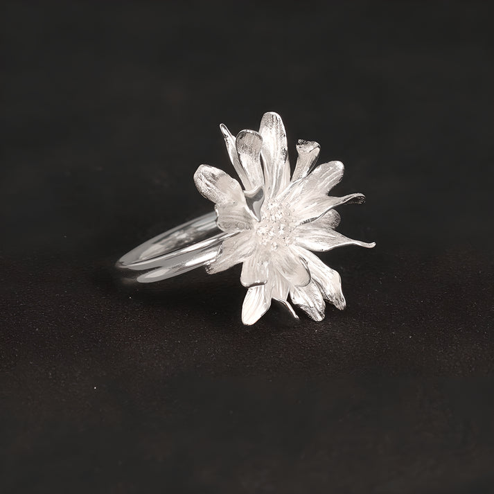African Daisy Flower Adjustable Open Ring 925 Sterling Silver