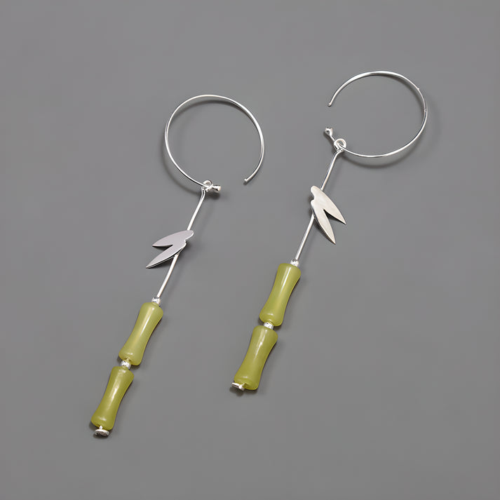 Bamboo Leaf Sterling Silver New Chinese Style Earrings - Minimalist Design