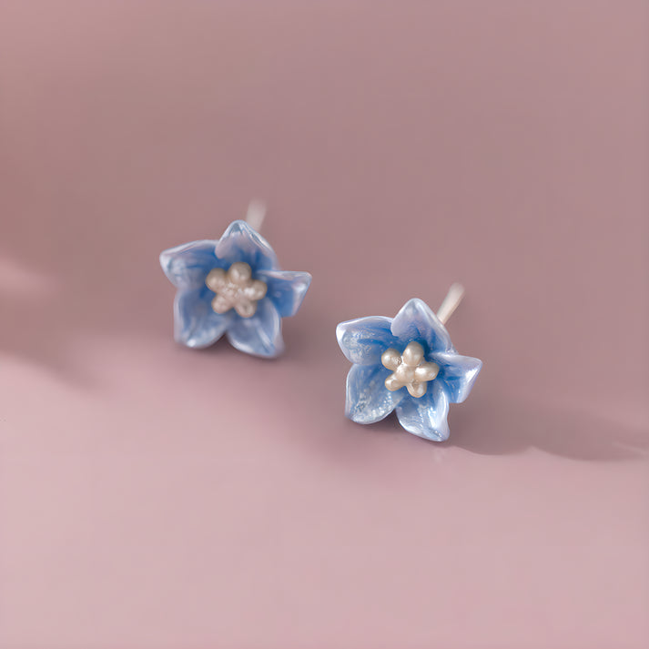 Delicate S925 sterling silver stud earrings featuring a charming blue camellia flower design. This unique, niche piece adds a fresh and sweet Korean-inspired touch to your style.