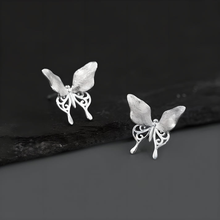 Elegant butterfly stud earrings crafted from 925 sterling silver featuring a beautiful hollow French-inspired design. Perfect for adding a touch of sophistication to both everyday wear and special occasions.