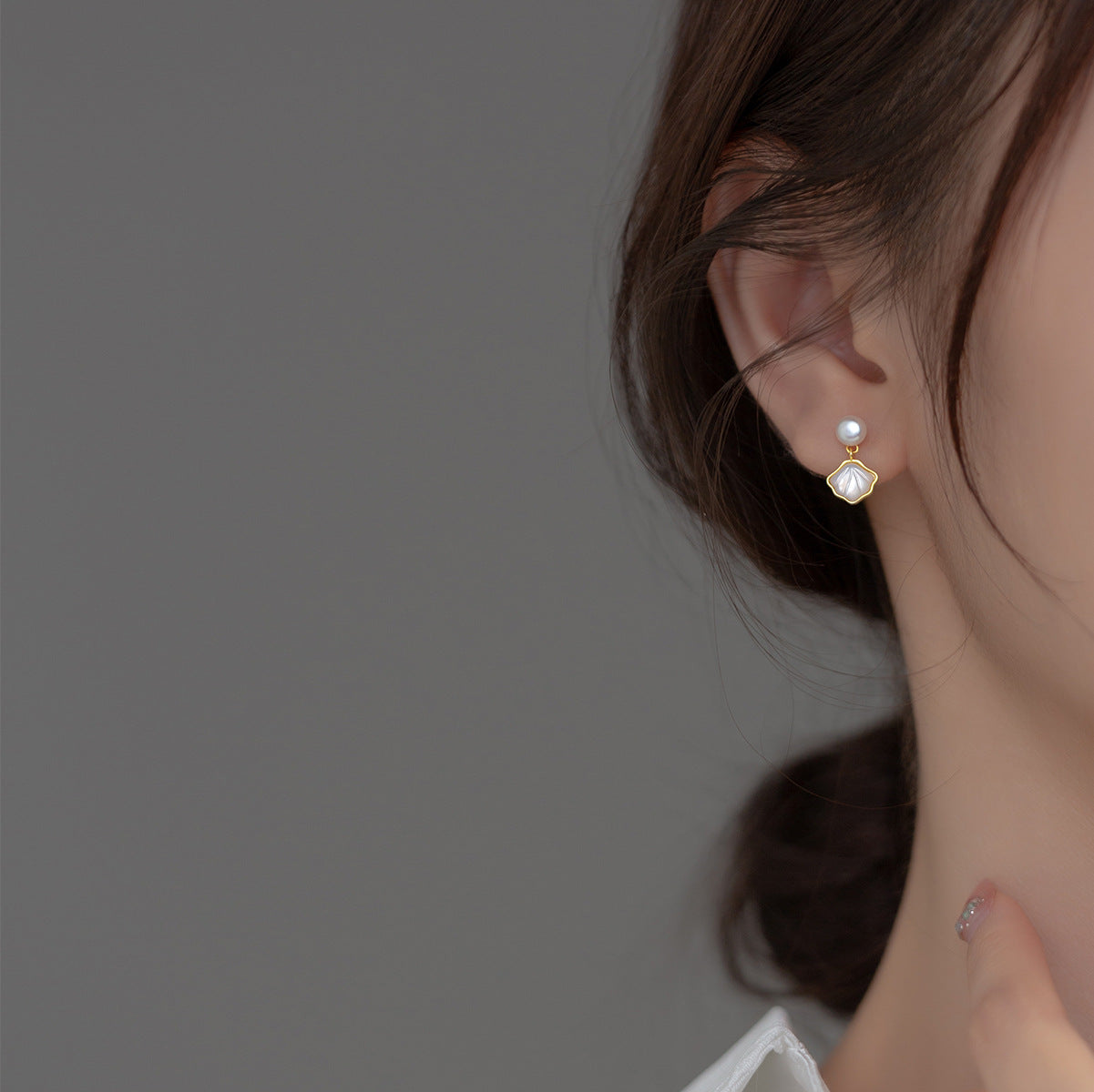 Elegant S925 Silver Summer Shell Pearl Stud Earrings