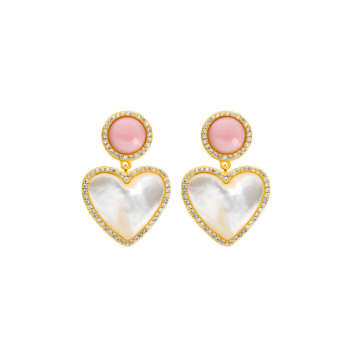 Exquisite French-style heart-shaped earrings crafted with natural white queen shell and mother of pearl. These elegant earrings feature a delicate and sweet design that's perfect for both everyday wear and special occasions. The electroplated finish adds a luxurious touch while maintaining the natural beauty of the shell materials.