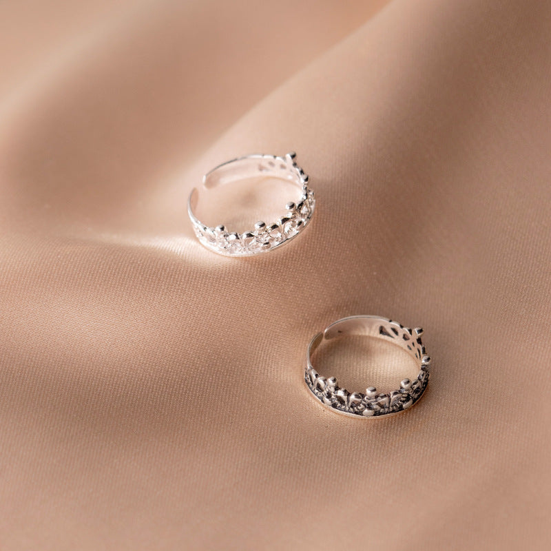 S925 Sterling Silver Hollow Crown Adjustable Ring - Retro Vintage Style