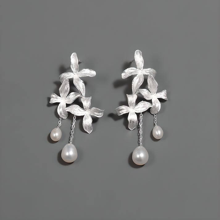 Lilac Flower Pearl Earrings S925 Sterling Silver Romantic Design