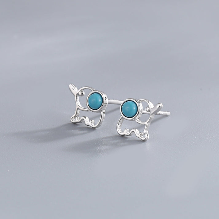 Mini Elephant Stud Earrings with Turquoise - S925 Sterling Silver