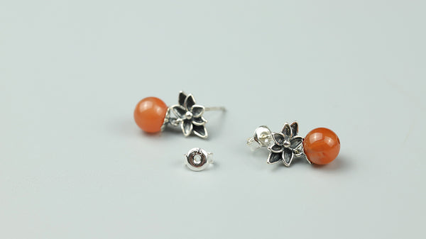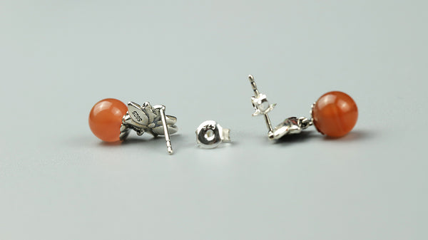 Natural Agate Silver Stud Earrings