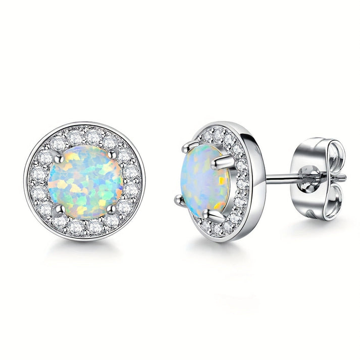 Elegant opal stud earrings featuring geometric design with round elements. Crafted with copper material and electroplated in white gold, these earrings showcase a fresh and sweet pastoral style. Perfect for everyday wear or special occasions, they offer a versatile and sophisticated look for both men and women.