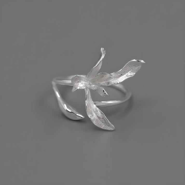 Orchid Floral Adjustable Ring S925 Sterling Silver Chinese Style