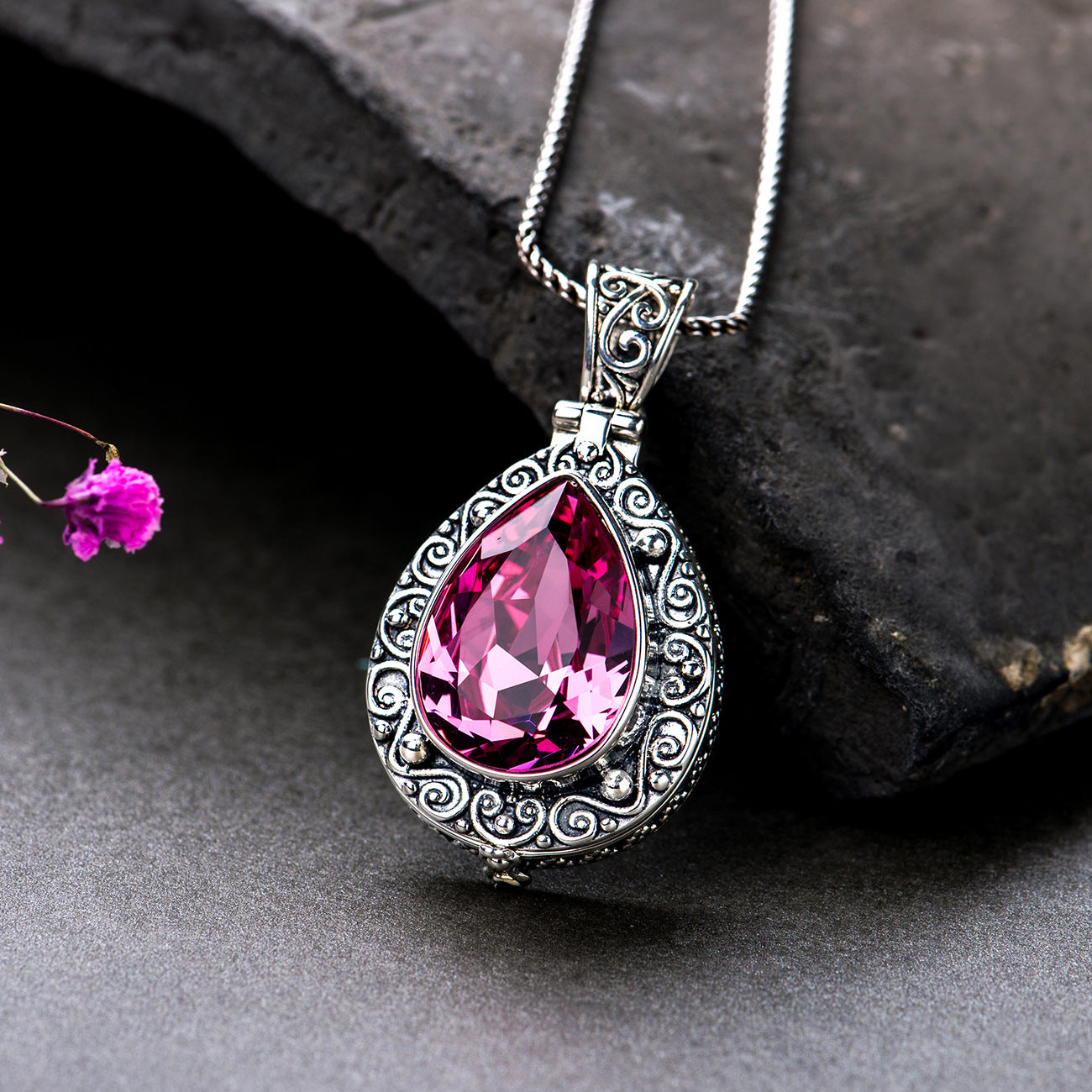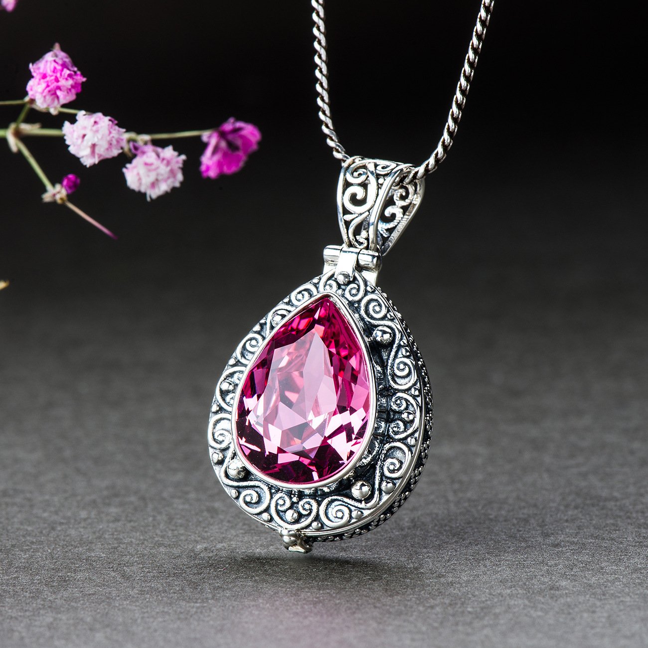 | Material: | Solid 925 Sterling Silver, Pink Crystal |