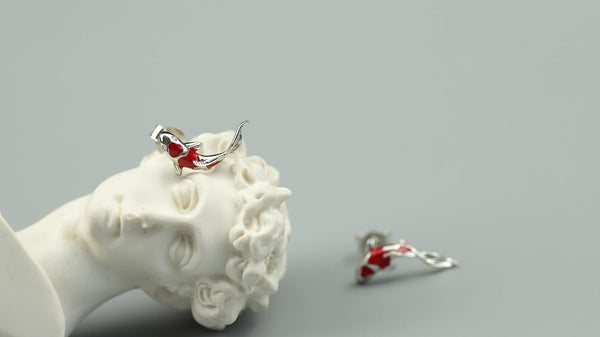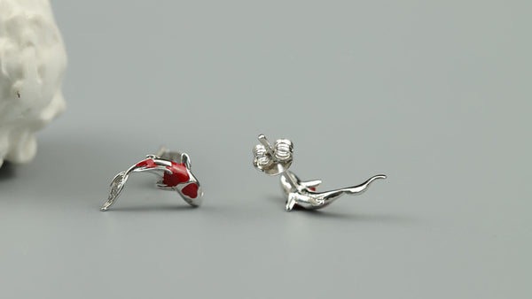 Koi Fish symbols good luch and bright future. With our Red Koi Fish Silver Stud Earrings, you will meet good things from now on.