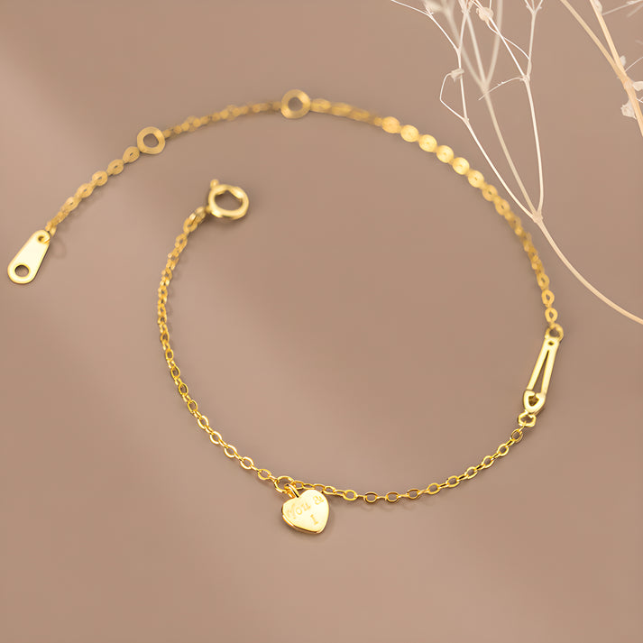 Delicate S925 silver bracelet with a heart-shaped pin featuring 'You and Me' inscription. Ultra-fine chain design offers a minimalist, versatile style perfect for daily wear or as a sweet gift for loved ones.