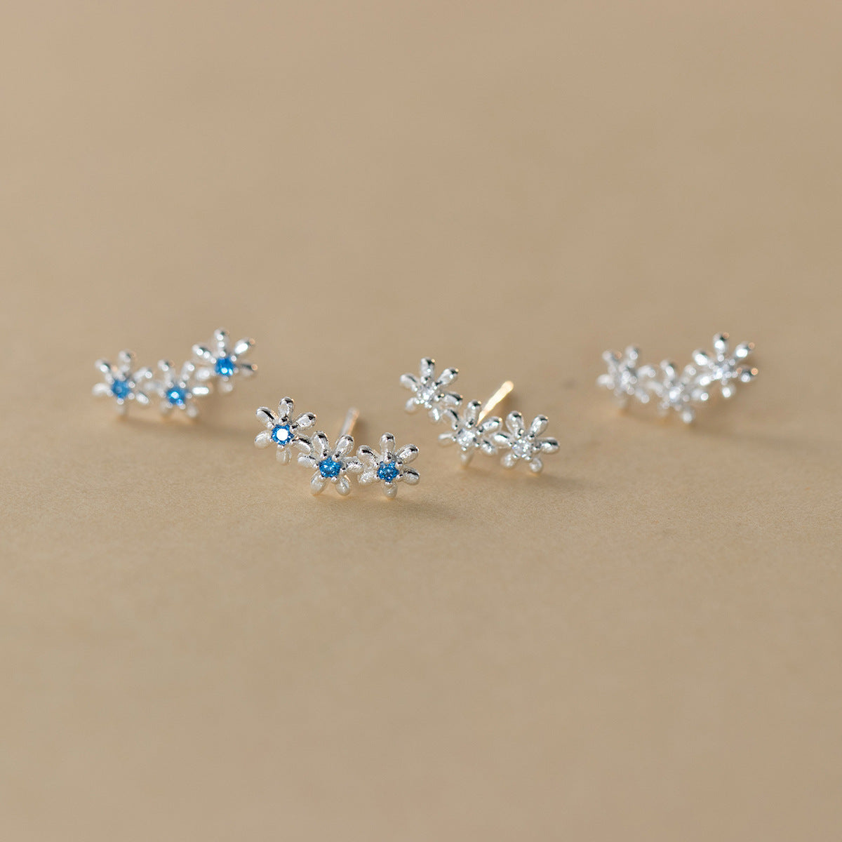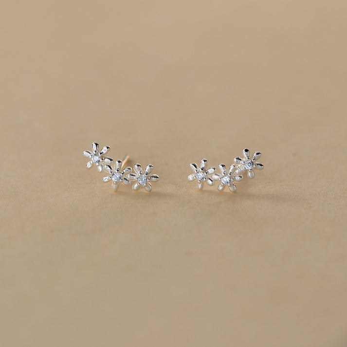 S925 Sterling Silver Cute Flower Pave Stud Earrings
