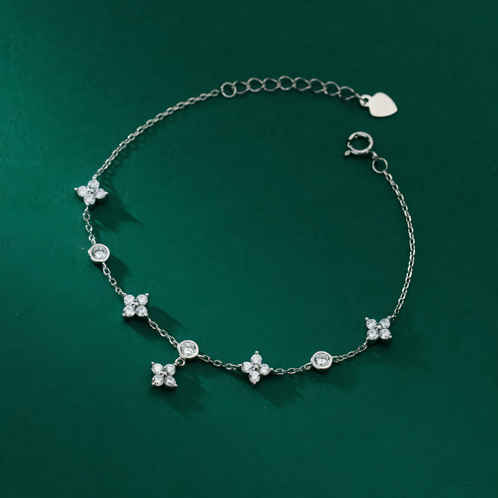 S925 Sterling Silver Four-Leaf Clover Zircon Bracelet Floral Design