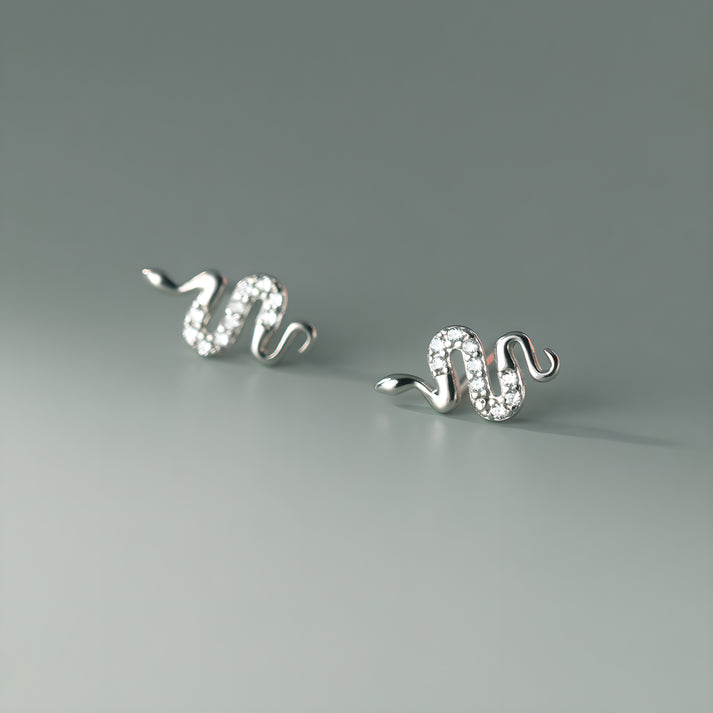 These playful snake stud earrings are made from premium S925 sterling silver, featuring a fun snake motif with sparkling zircon accents for a touch of elegance.