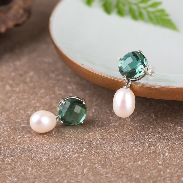 Material: | Solid 925 Sterling Silver, Green Crystal, Freshwater Pearl |